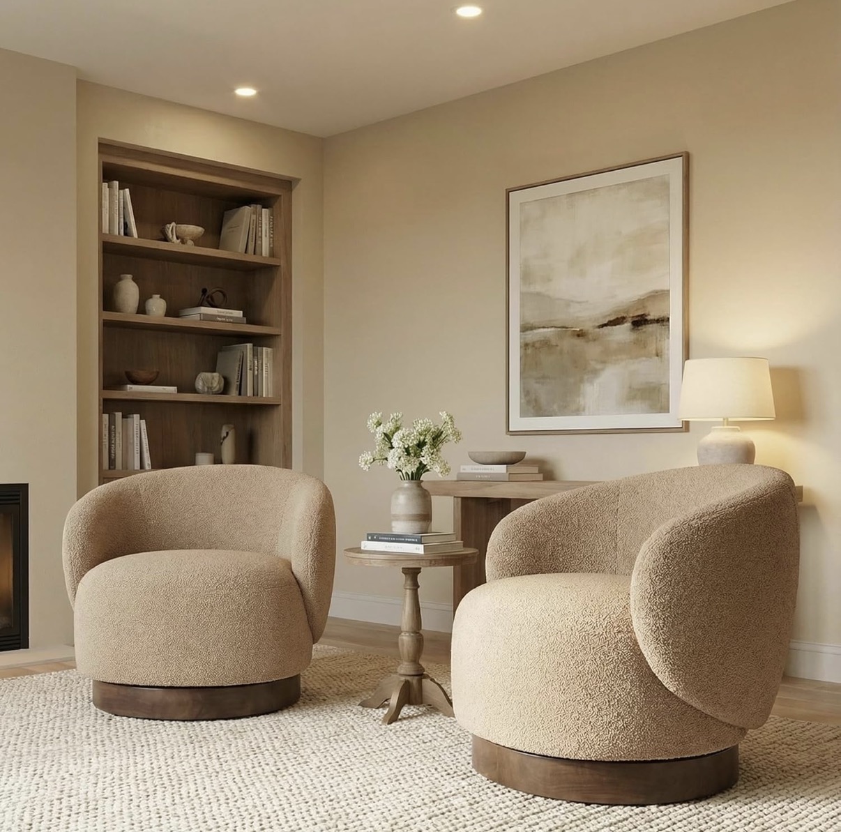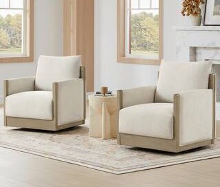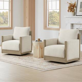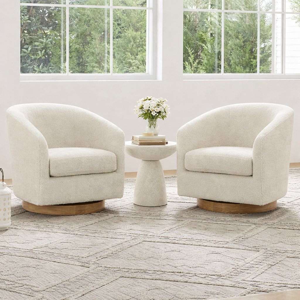 Set of 2 Cream Accent Chairs for Living Room + FREE Multipurpose 40 Inch Table