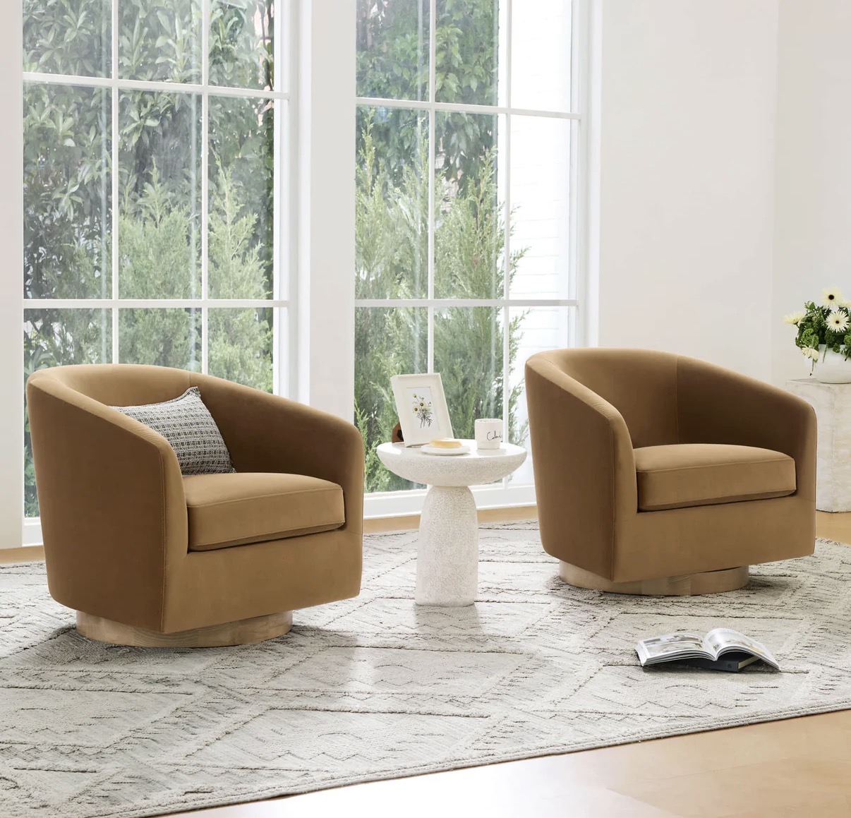 Set of 2 Camel Accent Chairs for Living Room + FREE Multipurpose 40 Inch Table