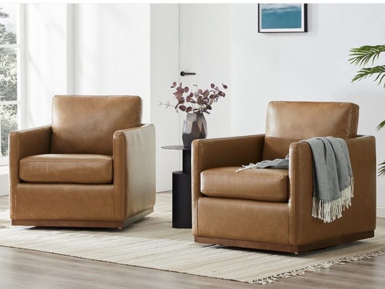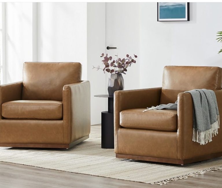 Set of 2 Premium Top-Grain Leather Accent Chairs for Living Room + FREE Multipurpose 40 Inch Table