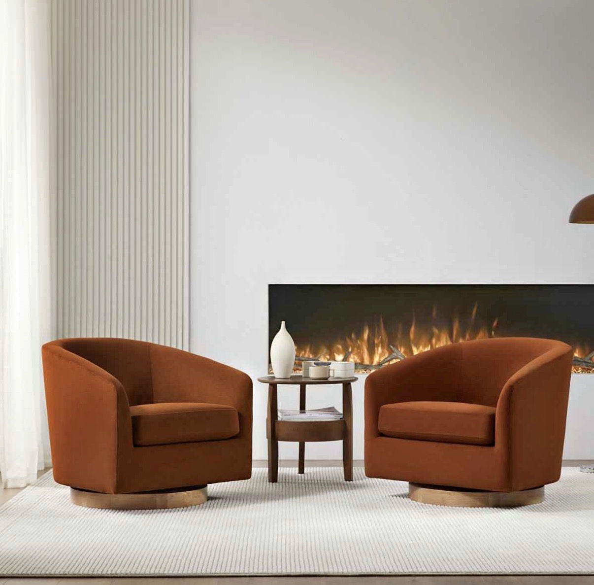 Set of 2 Burnt Orange-Velvet Accent Chairs for Living Room + FREE Multipurpose 40 Inch Table